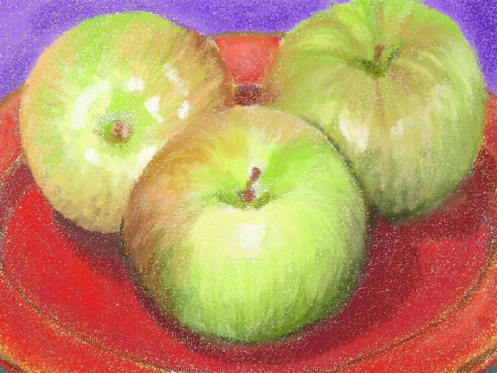 This well-rounded, open, and receptive face of the young attentive woman fills the paper. The complementary palette in orange and green harmonized with the yellow and purple skin tones. Her satisfied gaze pleasantly rests on the viewer's face.
