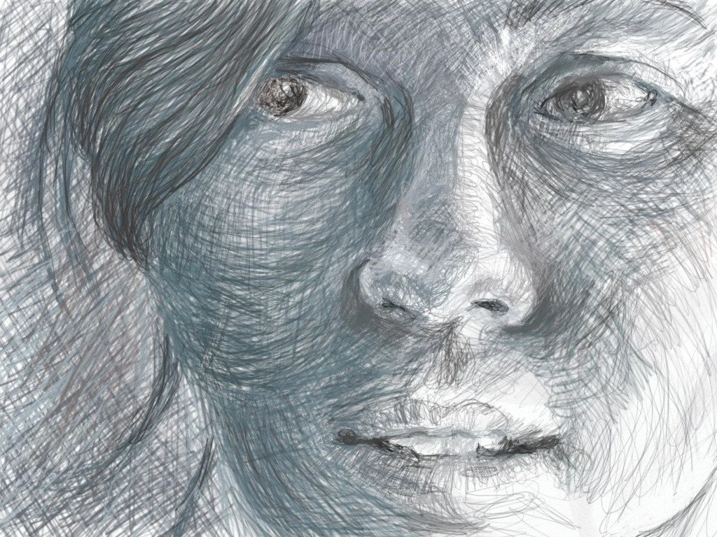 This sketch is one in a series of portraits of a 21st-century mystic. She represents an archetype for the artist muse.