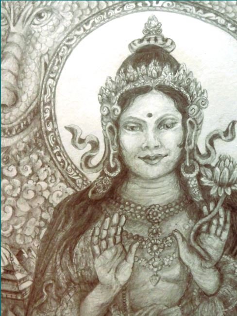 The artwork was inspired by a Vajrayana Buddhist practice of the Heart Sutra. This artwork embodies the essence of compassion and love of the great mother.